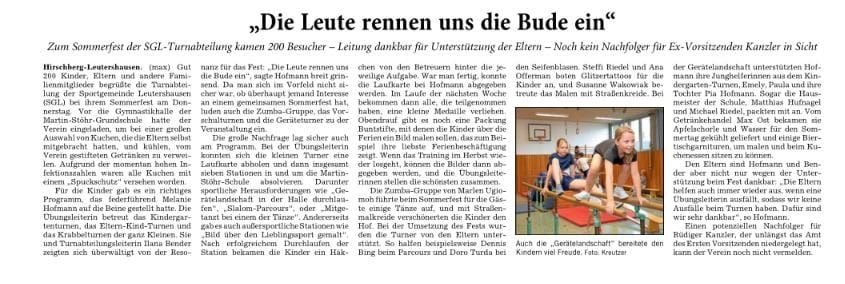 SG Leutershausen bringt Kinder seit über 130 Jahren in Bewegung - Buntes Programm beim großen Familienfest