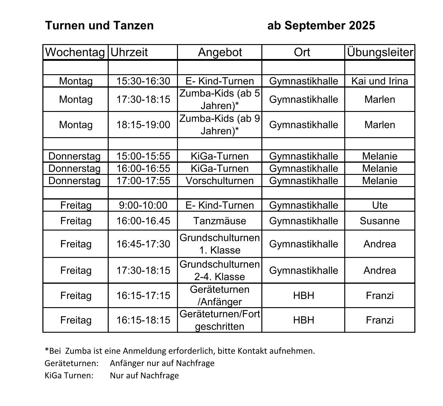 Sie sind hier: Startseite » Sportabteilungen » Kinderturnen » Übungszeiten