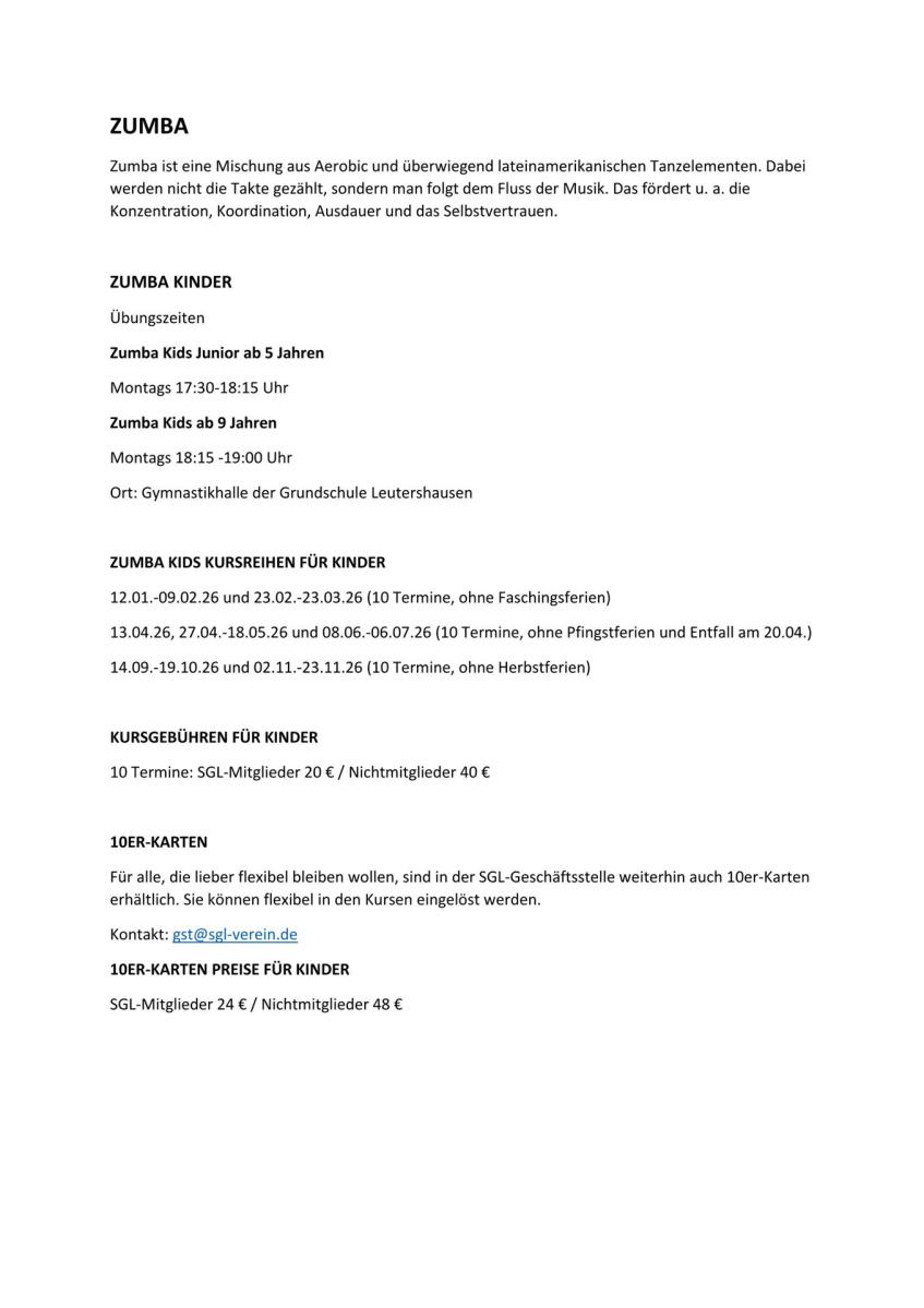 Anmeldung Zumba