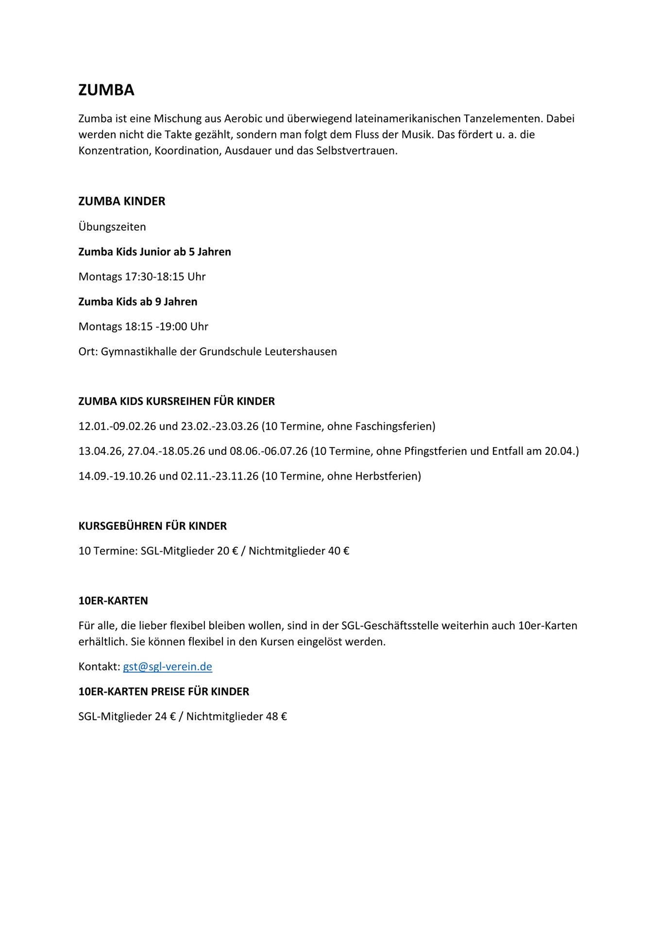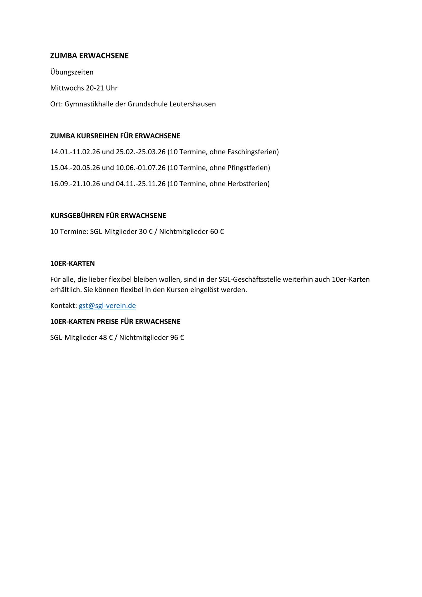 Übungszeiten / Kurse