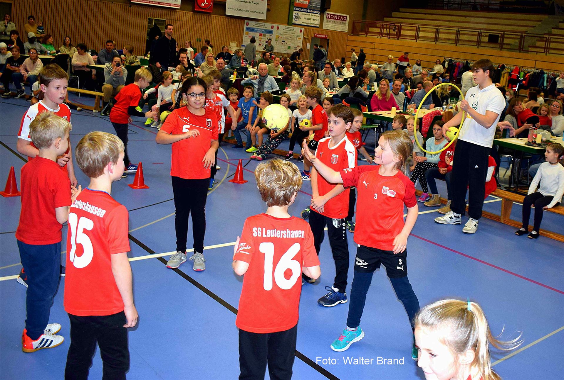 Über einhundertdreißig Jahre ist die SG Leutershausen in Bewegung, dies wurde bei den einzelnen Darbietungen am SGL Familientag wieder einmal besonders verdeutlicht. Toll, dass wir uns in diesem Jahr alle treffen und wiedersehen können, so begrüßte die zweite Vorsitzende Frauke Kühnl, die Kinder mit ihren Eltern und Großeltern, in der Heinrich - Beck Halle. Den musikalischen Auftakt machte der Nachwuchs vom Ev. Posaunenchor. Rund sechshundertsechzig Kinder und Jugendliche sind bei der SG Leutershausen in den einzelnen Sport Gruppen engagiert, wobei sehr viele gekommen waren, um diesen Nachmittag bei sportlicher Bewegung und im Spiel mit zu gestalten. Zu Beginn begrüßte die zweite Vorsitzende Frauke Kühnl, alle großen und kleinen Gäste in der Heinrich - Beck Halle in Leutershausen. Ihre besonderen Willkommensgrüße übermittelte sie den Ehrenmitgliedern, Bürgermeister Ralf Gänshirt und den anwesenden Gemeinderäten. Großen Spaß hatten am Familientag die Handball - Minis, die ihr Können unter der Leitung von Susanne Otterbeck, auf den Bänken, mit Reifen und den Hütchen zeigten. Viel Beifall gab es auch für die "Zumba" Kinder, die unter der Leitung von Marlen Ugiomoh flotte Tänze wie "The Passenger", "Dance, Dance, Dance" und "Se Prendiò" zeigten. Insgesamt fünf Trainerinnen sind für die Leichtathletik der Kinder im Verein verantwortlich. Brita Schmitt zeigte mit ihrer Kindergruppe, welche Übungen man beim Weitsprung machen kann. Die Eltern-Kinder-Turngruppe, unter der Regie von Melanie Hofmann, führte mit ihren Kindern vor, wie man spritzig zu Hause in der eigenen "Weihnachtsbäckerei" Plätzchen fertigt. Dabei hatten vor allem die Kinder sehr viel Freude. Weitere Programmpunkt war das Gerätturnen bei dem Elemente am Boden mit Akrobatik von Franziska Maier gezeigt wurde, die Rhythmische Tanzdarbietung mit dem Lied von "Tante Rita" und die Darbietung der SGL Tanzmäuse, die auf die Melodie "Matratze die Katze" tanzten. Zeichen des Friedens setzten die Kinder auf dem Boden sitzend mit ihren Kerzen und dem Lied "Zünd ein Licht'' an gegen die Einsamkeit, die Gewalt, den Streit und die Gleichgültigkeit. Zünd ein Licht an für die Gerechtigkeit, lass es lodern, lass es flammen für den Frieden auf der Welt. Besonderer Dank galt Oxana Klohr, die mit den Kids alles einstudiert hatte. Auch die Kinder der einzelnen Altersstufen vom Kindergarten, unter der Regie von Melanie Hofmann, begeisterten mit den Darbietungen von Elementen des Turnens in verschiedenen Schwierigkeitsgraden ihr Publikum. Viel Applaus gab es zudem für Pia Hofmann und Anna Strobach, die aus ihrem Judo Repertoire einige besondere Übungen und Griffe zeigten. Bevor die Halle verdunkelt wurde, hatten sich alle Kinder vor den Tischen versammelt. Nach dem "Schneeflockentanz" der Eltern -Kinder-Turngruppe, stieg bei verdunkelter Halle die Spannung auf das erwartungsvolle kommen vom Nikolaus. Dieser wurde unter dem Kerzenlicht von zwei kleinen Engelchen begleitet. Ein überaus freundlicher Nikolaus in seinem rot/weißen Kostüm, (es sind auch die Vereinsfarben) begrüßte die kleinen und großen Gäste, wobei er sich über die sehr gut gefüllte Sporthalle freute. Mutige Kinder trugen ein Weihnachtsgedicht vor, die vom Nikolaus besonders gelobt wurden. Besondere Freude kam in der Halle auf, als ein kleiner Knirps mit seinem Gedicht an den Heiligen St. Martin erinnerte. Für alle Kinder gab es vom Nikolaus eine Weihnachtstüte, die so manche Leckerei beinhaltete. Danach musste der Nikolaus mit seinen beiden Engelchen weiter, schließlich gibt es viele Kinder auf der Welt, die er noch besuchen muss. Mit musikalischen Klängen und viel Applaus wurde er von allen verabschiedet. Frauke Kühnl, die den Familiennachmittag mit informativen Inhalten moderierte, übermittelte abschließend ihren Dank an alle Mitwirkenden für die Gestaltung der Familienfeier. Auch bei allen Helfer:innen , dem Küchenpersonal, die für das leibliche Wohl sorgten und den Jungbläsern vom Ev. Posaunenchor unter der Leitung von Markus Binz, die gekonnt das Programm mit weihnachtliche Weisen umrahmten, dankte sie sehr herzlich.